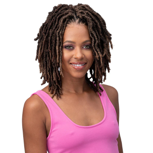 Bobbi Boss Synthetic Hair Crochet Braids African Roots Braid Collection Nu Locs 8". These faux dreadlocks are soft to the touch and natural-looking. Available in natural colors and bold shades, this crochet braiding hair is perfect for creating a stylish dreadlock hairstyle. Brand new length and new colors available!